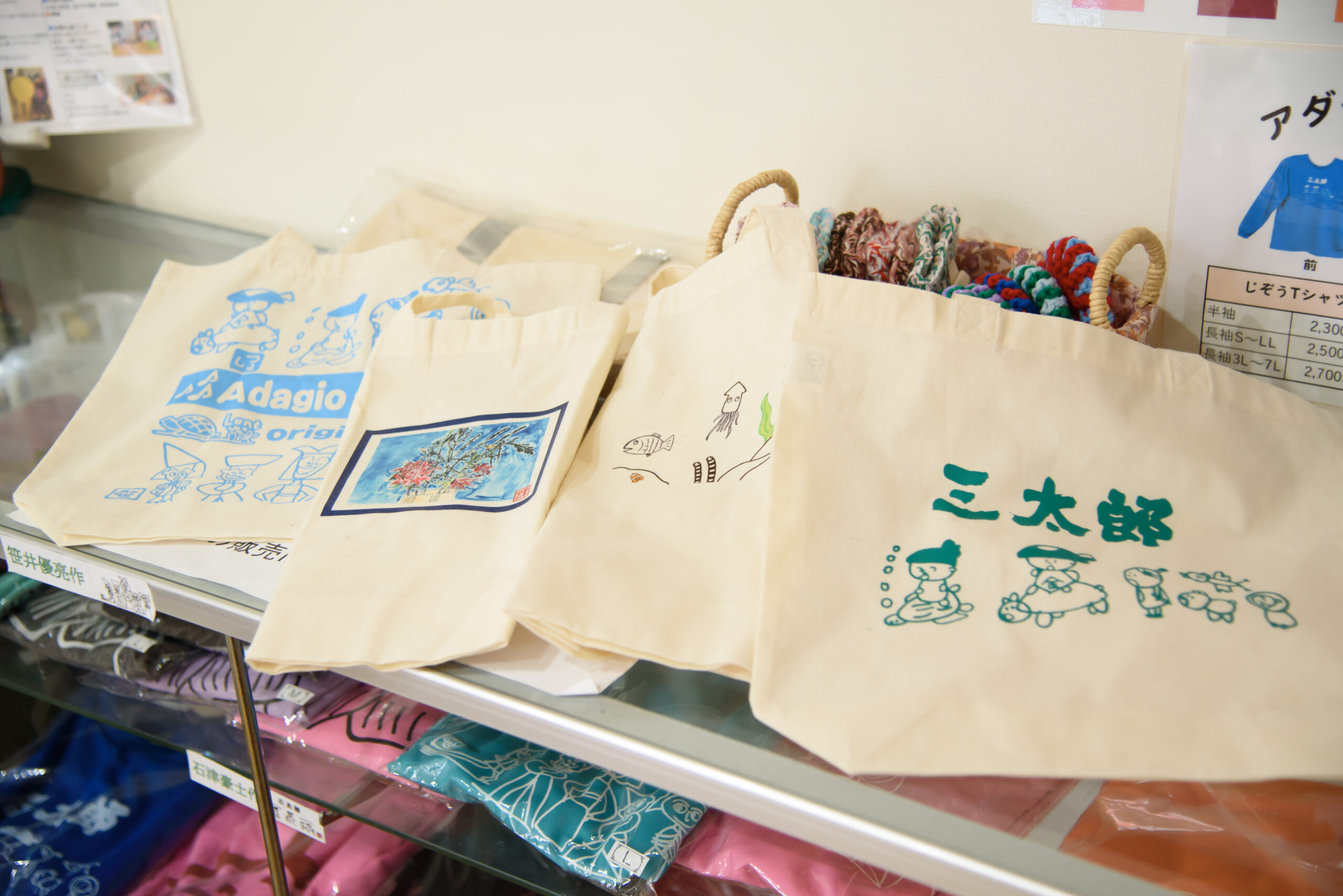 また、利用者さんイラストのオリジナルエコバッグも併せて販売しています。